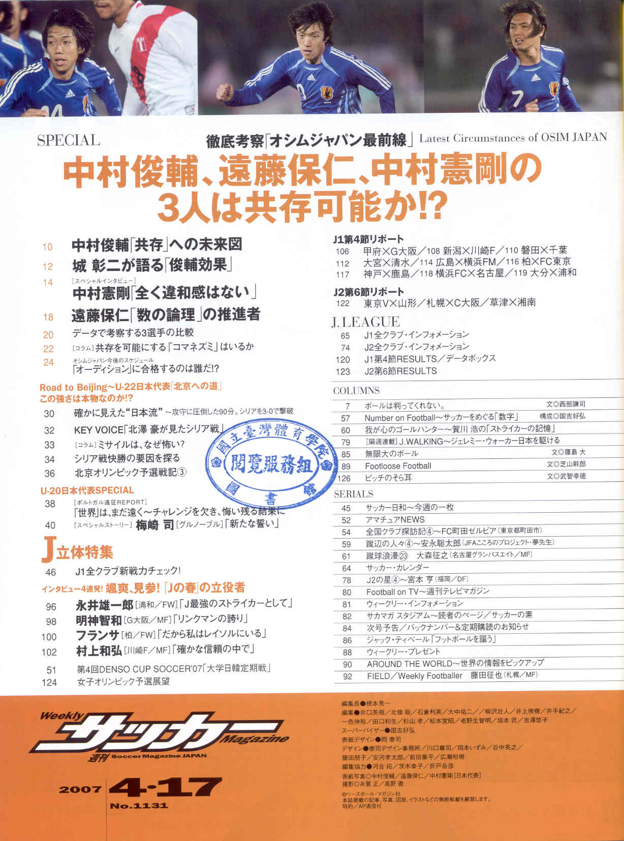 サッカ—マガジン 2007-04No.1131(目次服務)