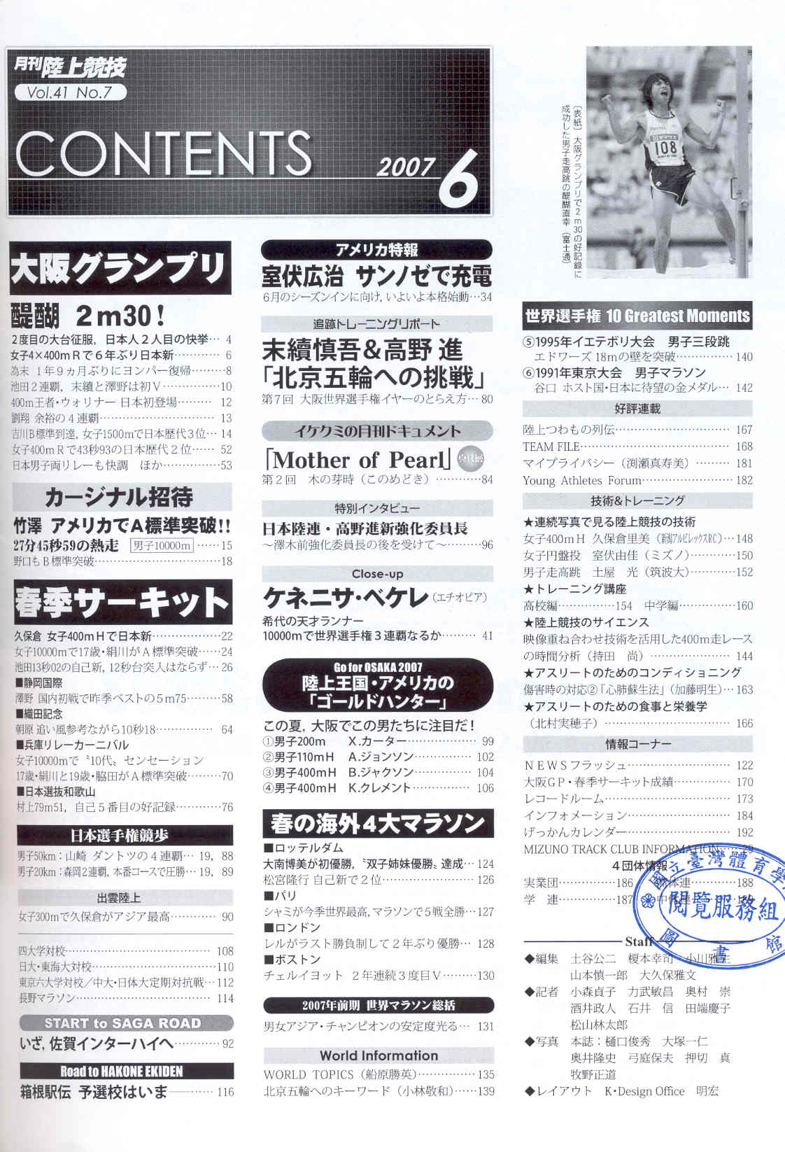 月刊陸上競技 2007-06v.41-7(目次服務)