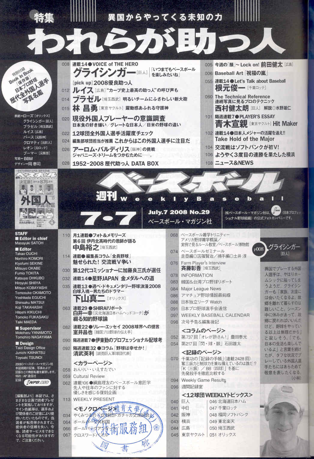 ベ—スボ—ルマガジン 2008-07v.63-29(目次服務)
