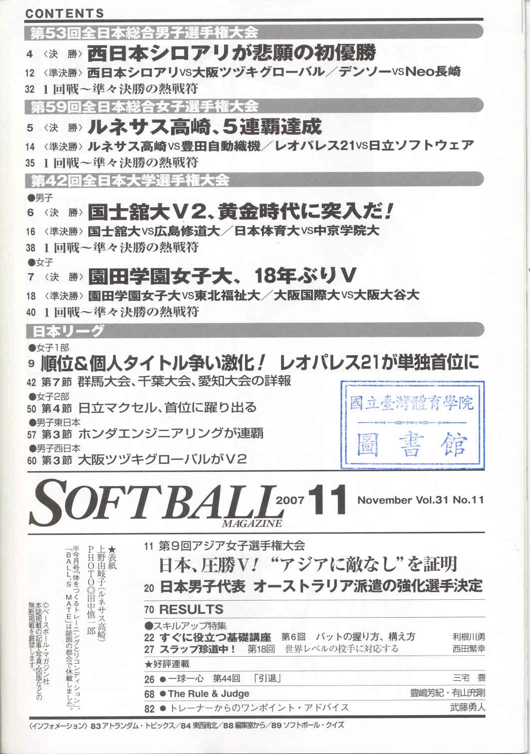 ソフトボ–ル 2007-11v.31-11(目次服務)