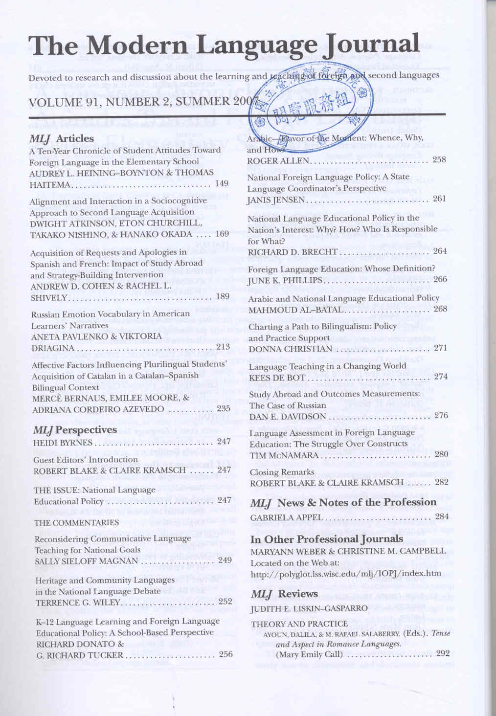 Modern Language Journal 2007-06v.91-2(目次服務)