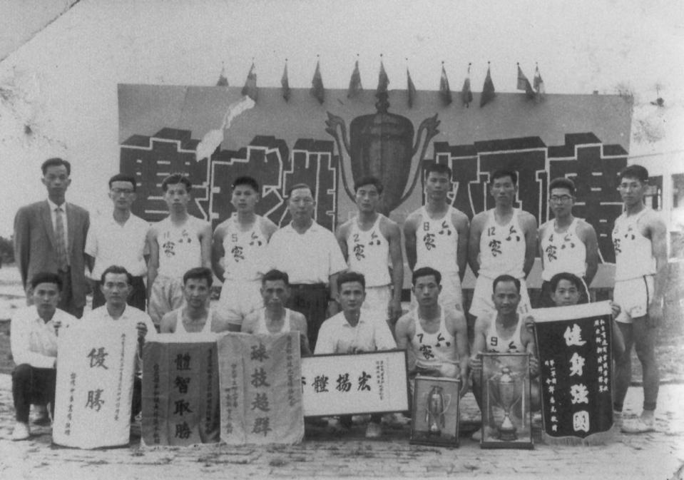新竹縣六家國校,其教職員排球,以及學生課間花式步伐和跳繩,在民國40、50年代聞名全台灣,包遊覽車前往觀摩者絡繹不絕。圖為六家國校教職員排球隊,後排中立者是辦學極注重體育的林雲霞校長(1908-1979)。圖片攝於民國54年。(圖:林礽亮 文:張素珠)