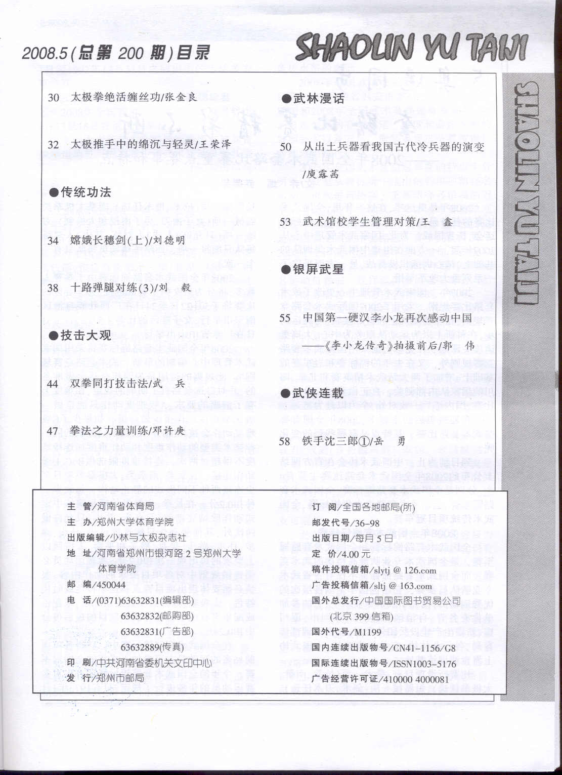 少林与太极 2008-05No.200(目次服務)