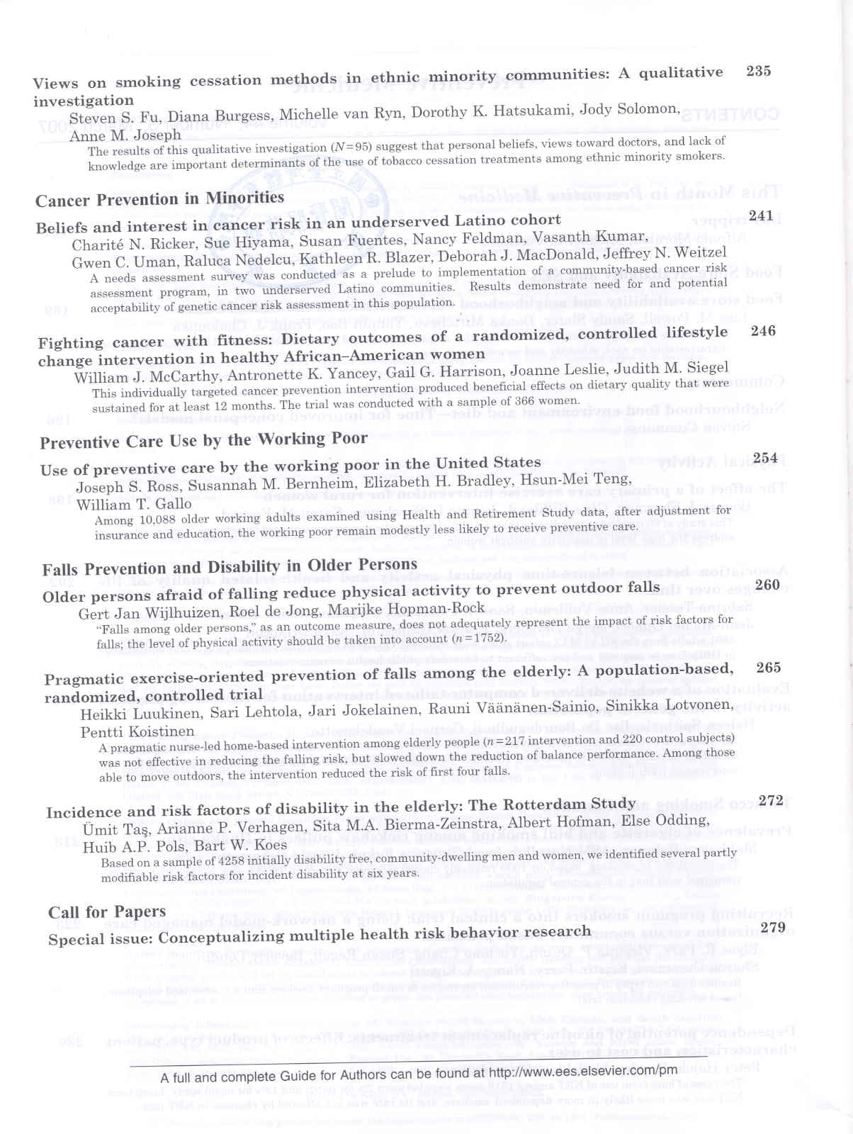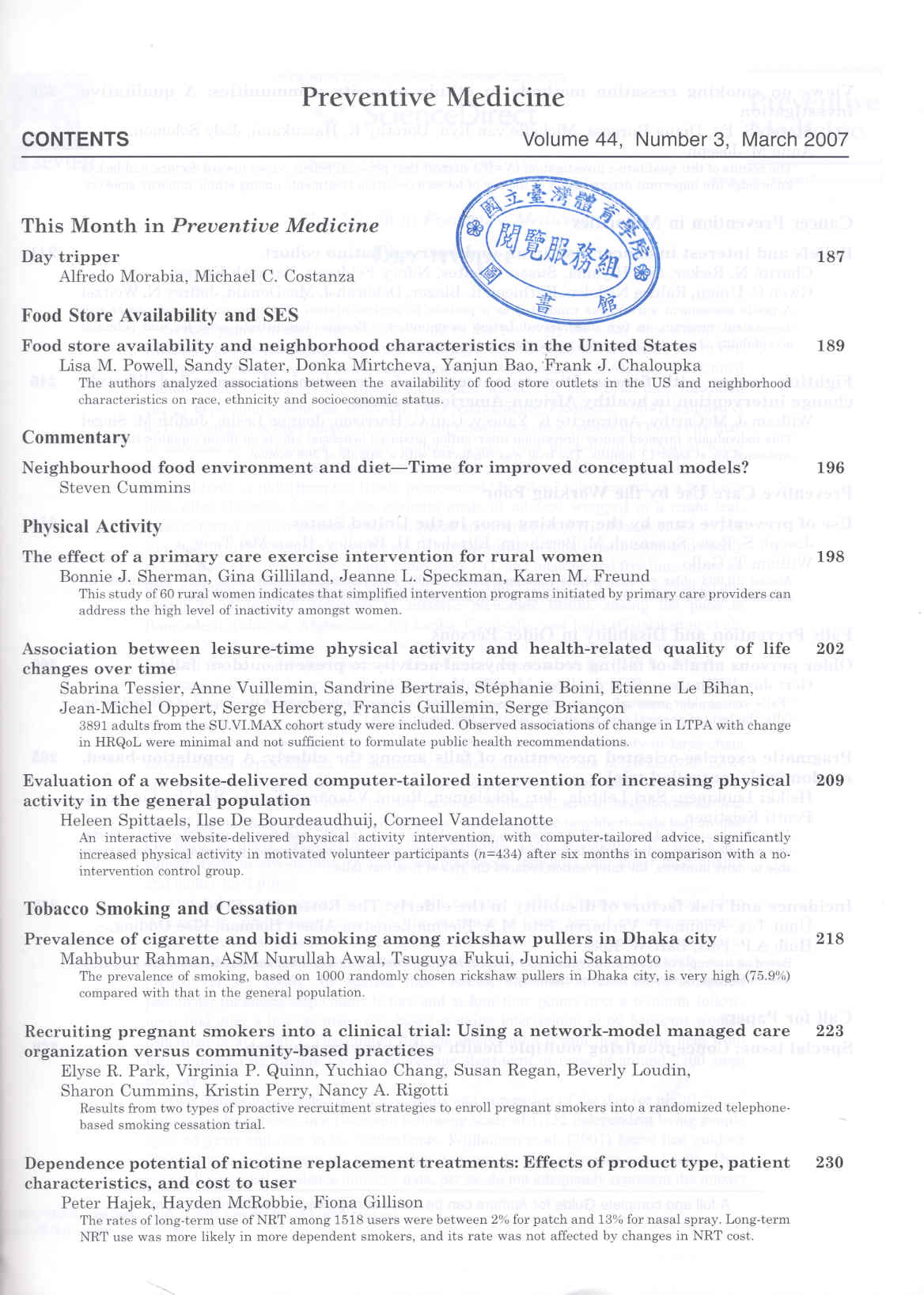 Preventive Medicine 2007-03v.44-3(目次服務)