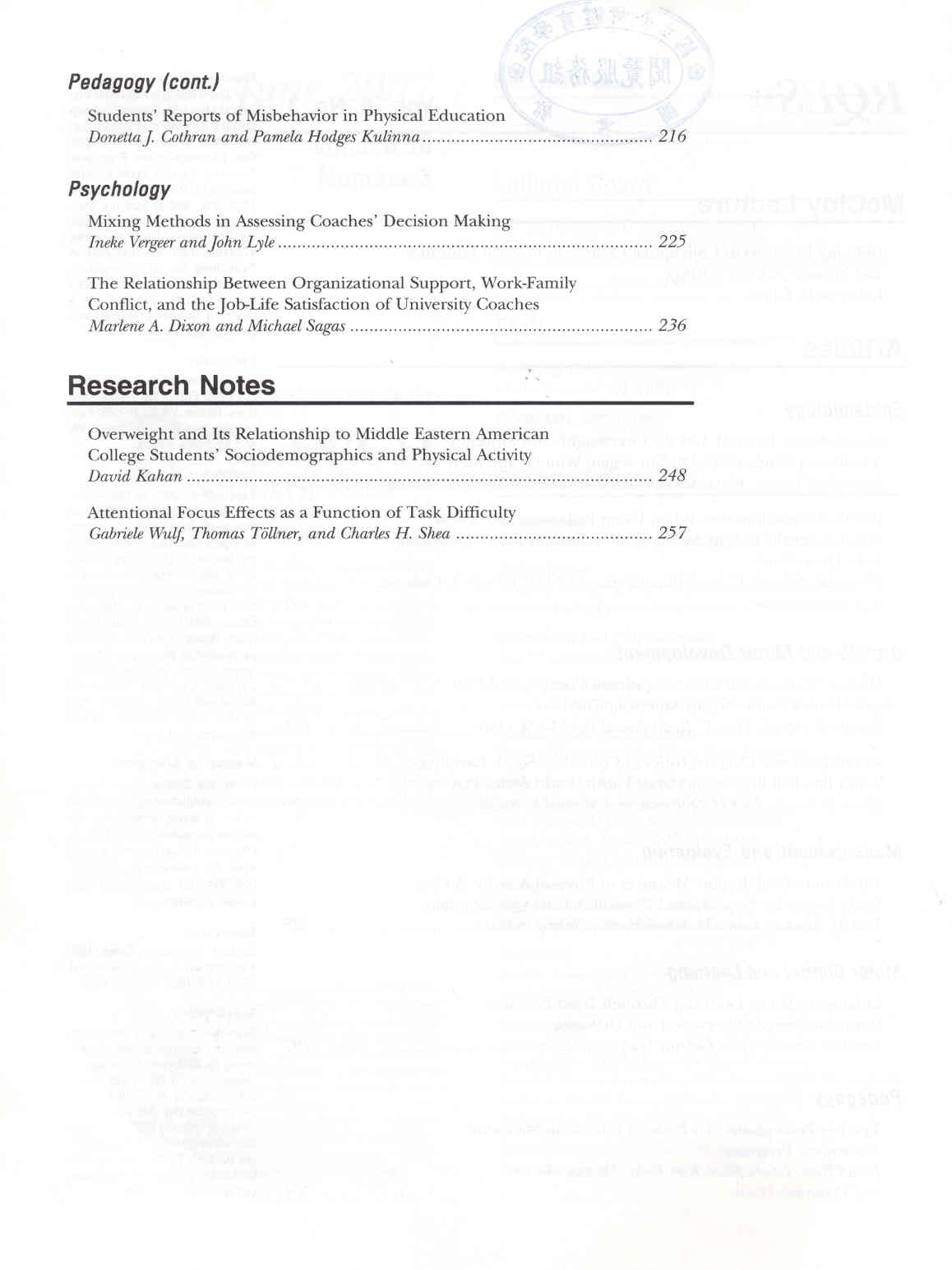 Research Quarterly for Exercise and Sport 2007-06v.78-3(目次服務)