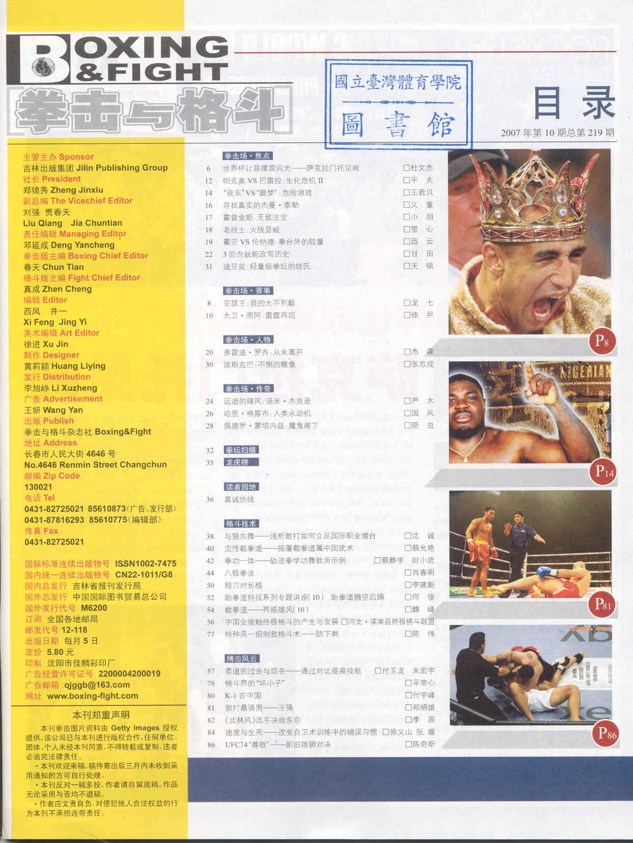 拳击与格斗 2007-10No.219(目次服務)