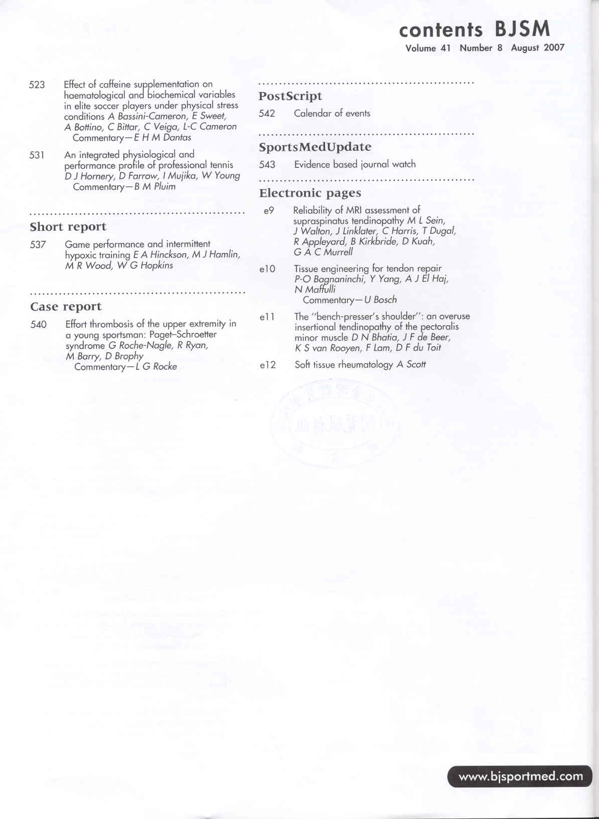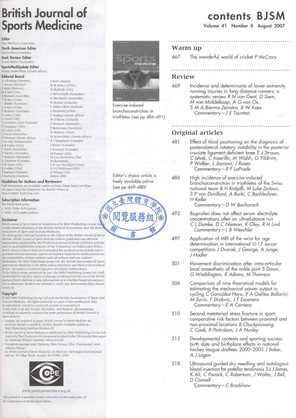 British Journal of Sports Medicine 2007-08v.41-8(目次服務)