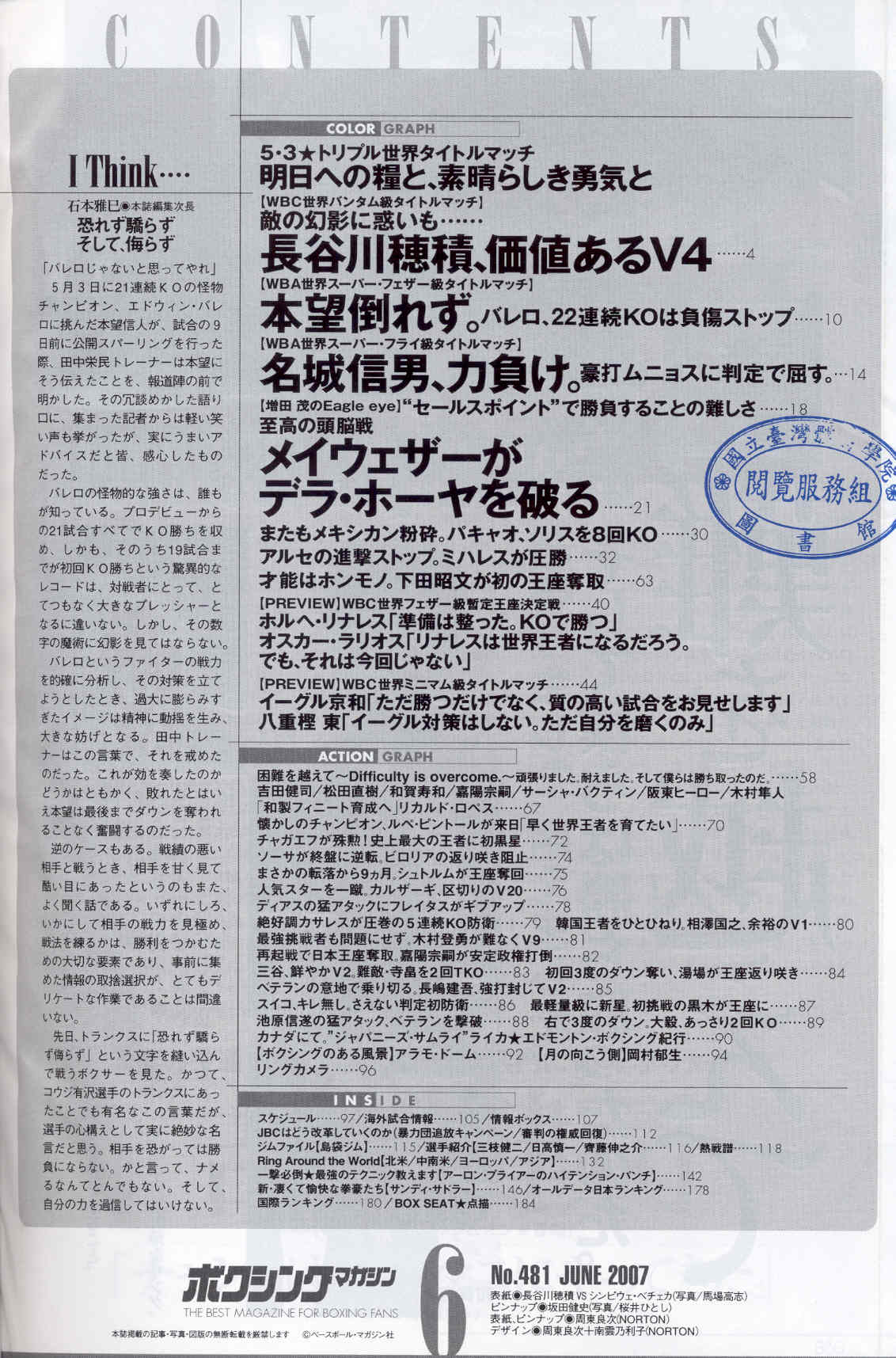 ボクシンクマカジン 2007-07No.482(目次服務)
