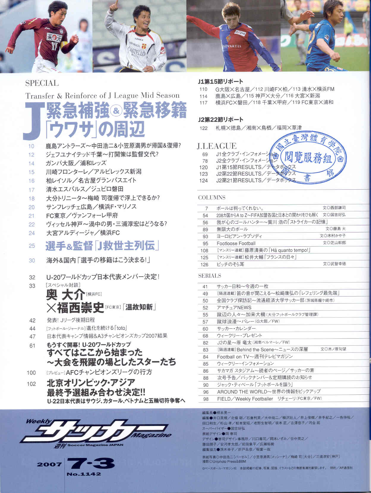 サッカ—マガジン 2007-07No.1142(目次服務)