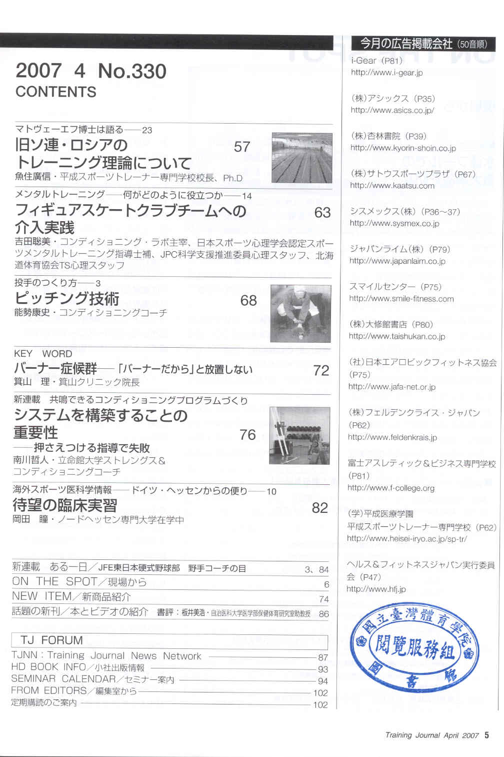 月刊トレ—ニング・ジャ—ナル 2007-04v.29-4(目次服務)
