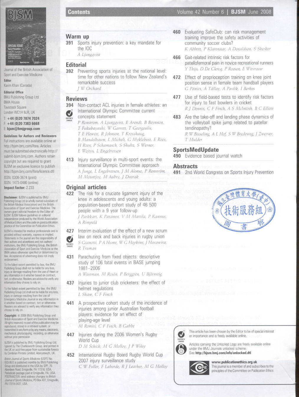 British Journal of Sports Medicine 2008-06v.42-6(目次服務)