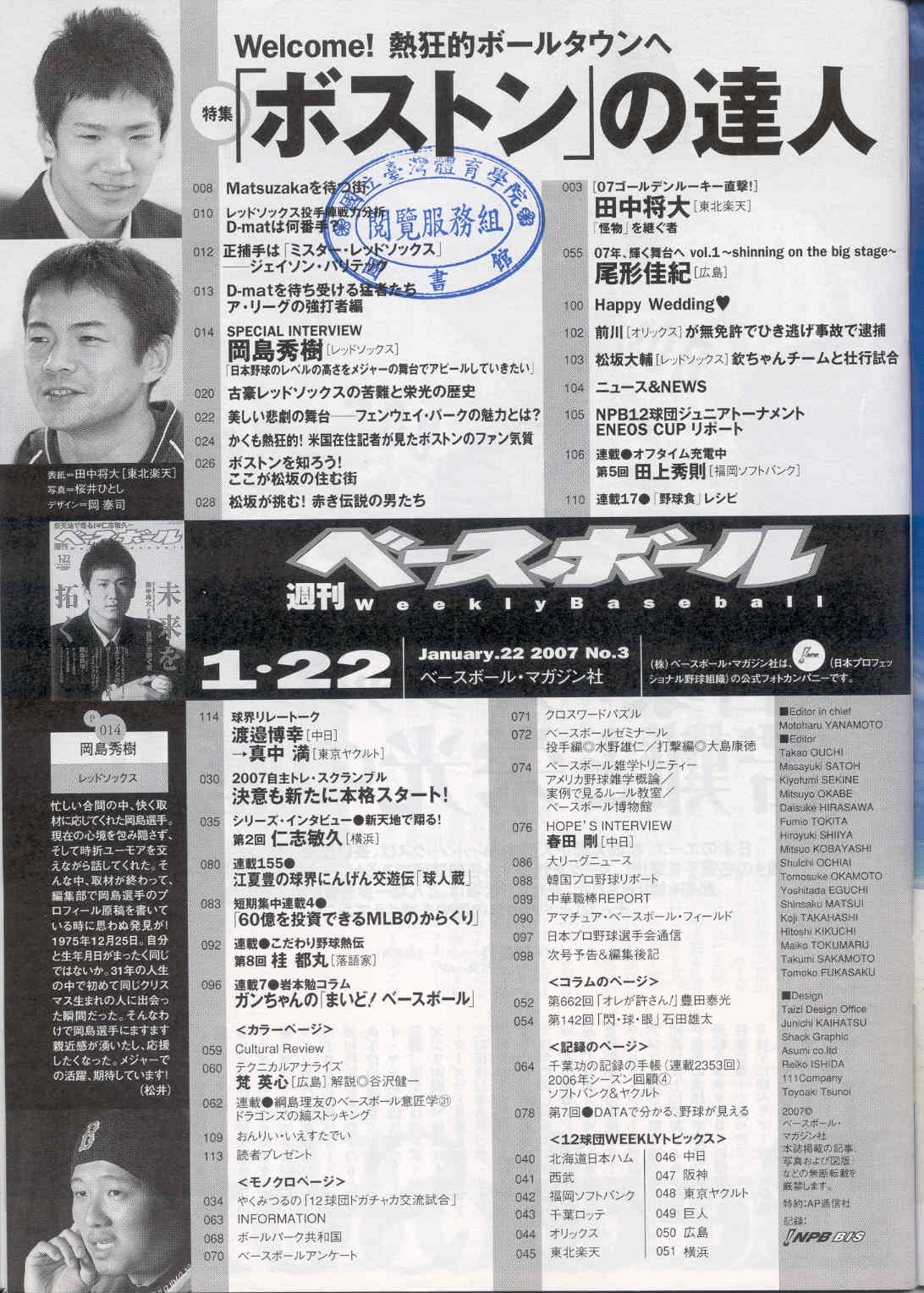 ベ—スボ—ルマガジン 2007-01v.62-3(目次服務)