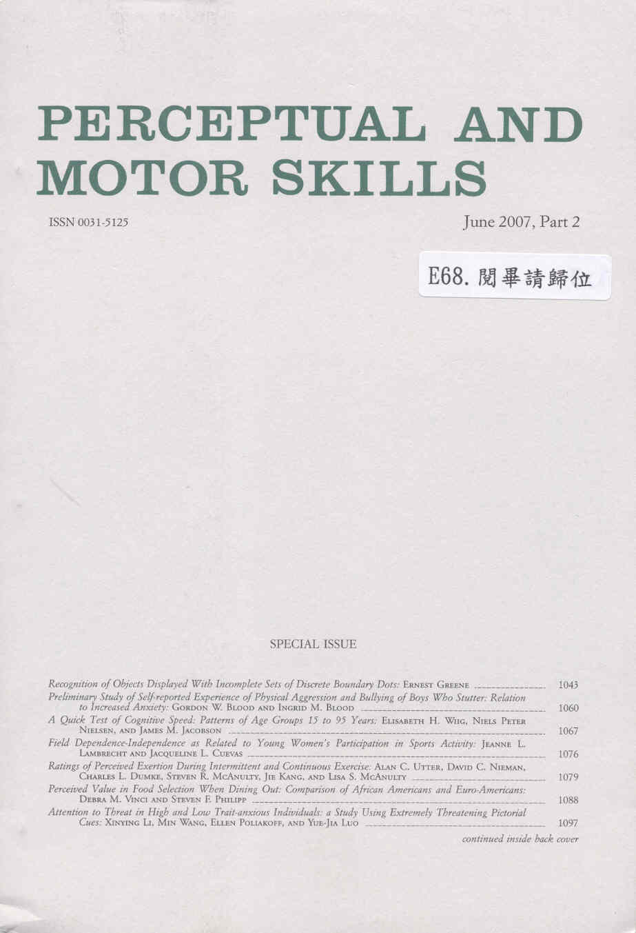 Perceptual and Motor Skills 2007-06v.104-3-part 2(目次服務)