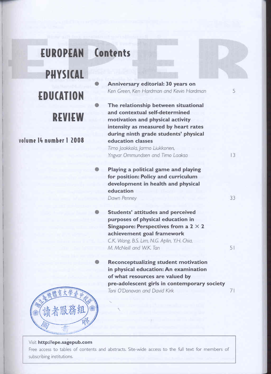European Physical Education Review 2008-02v.14-1(目次服務)