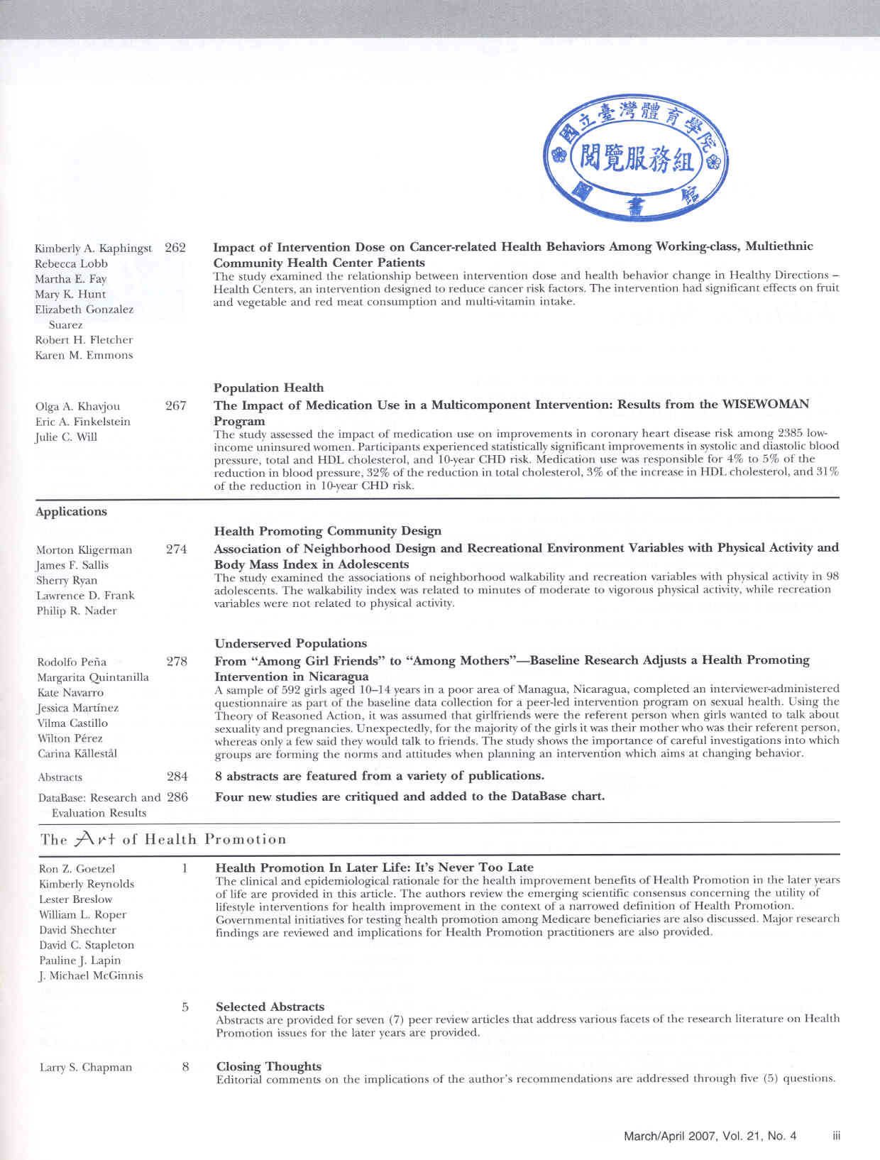 American Journal of Health Promotion 2007-03v.21-4(目次服務)