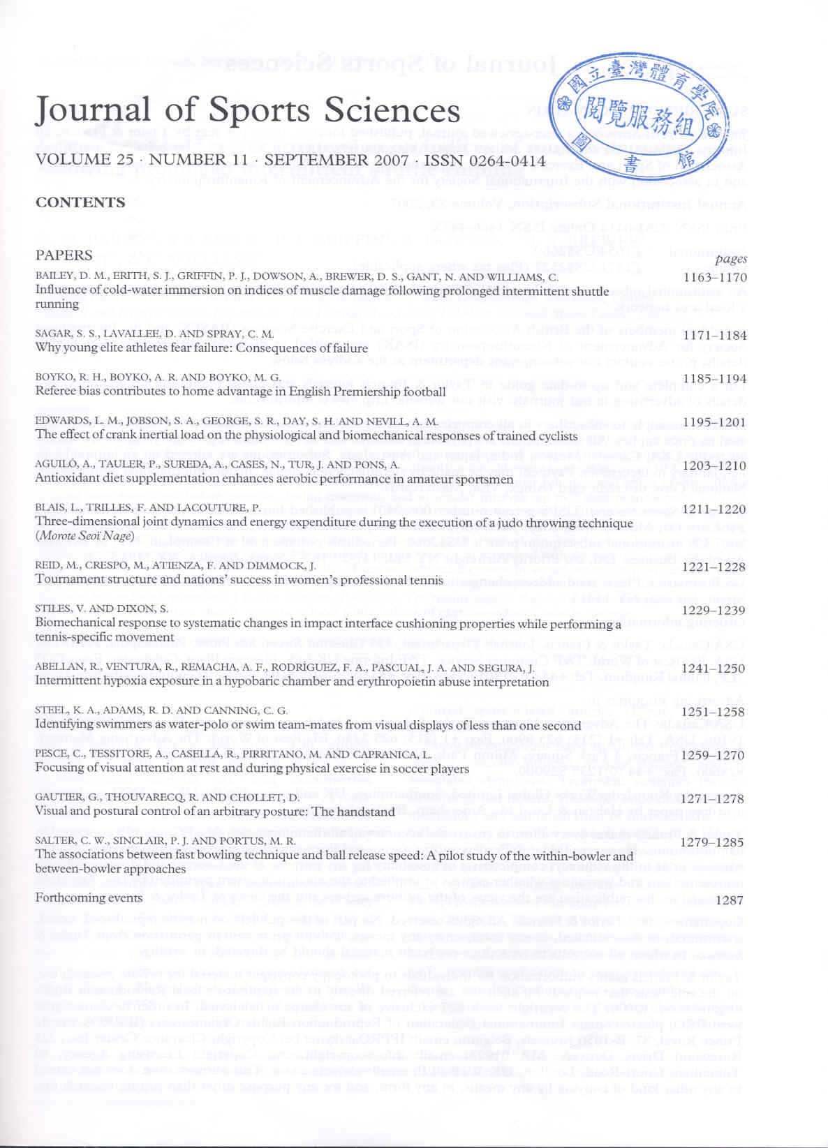 Journal of Sports Science 2007-09v.25-11(目次服務)