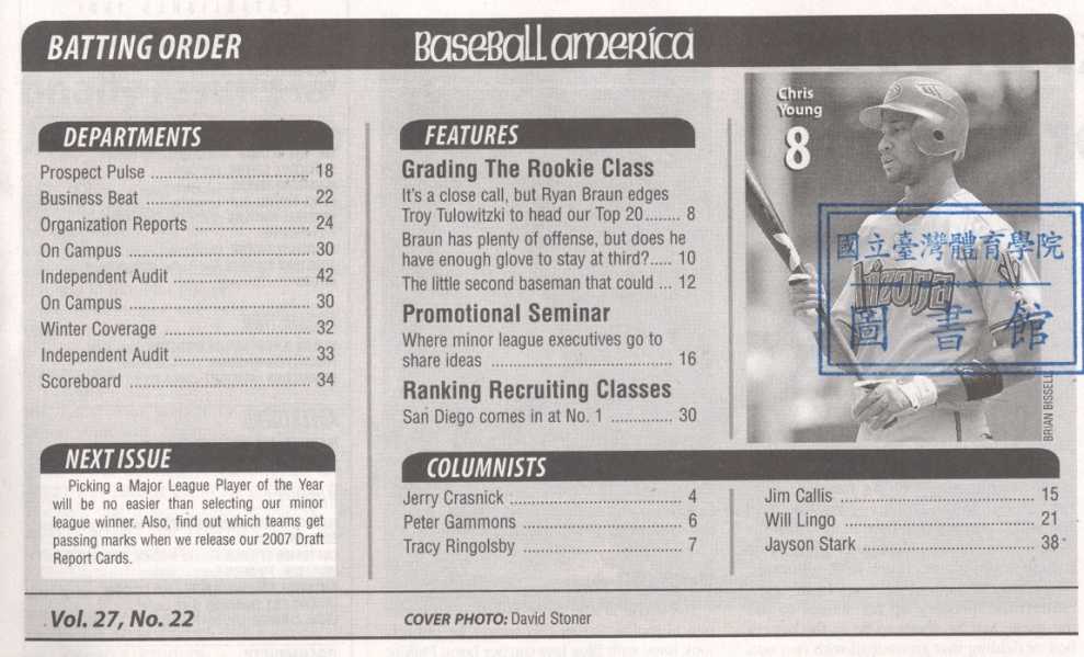 Baseball America 2007-10v.27-21、22(目次服務)