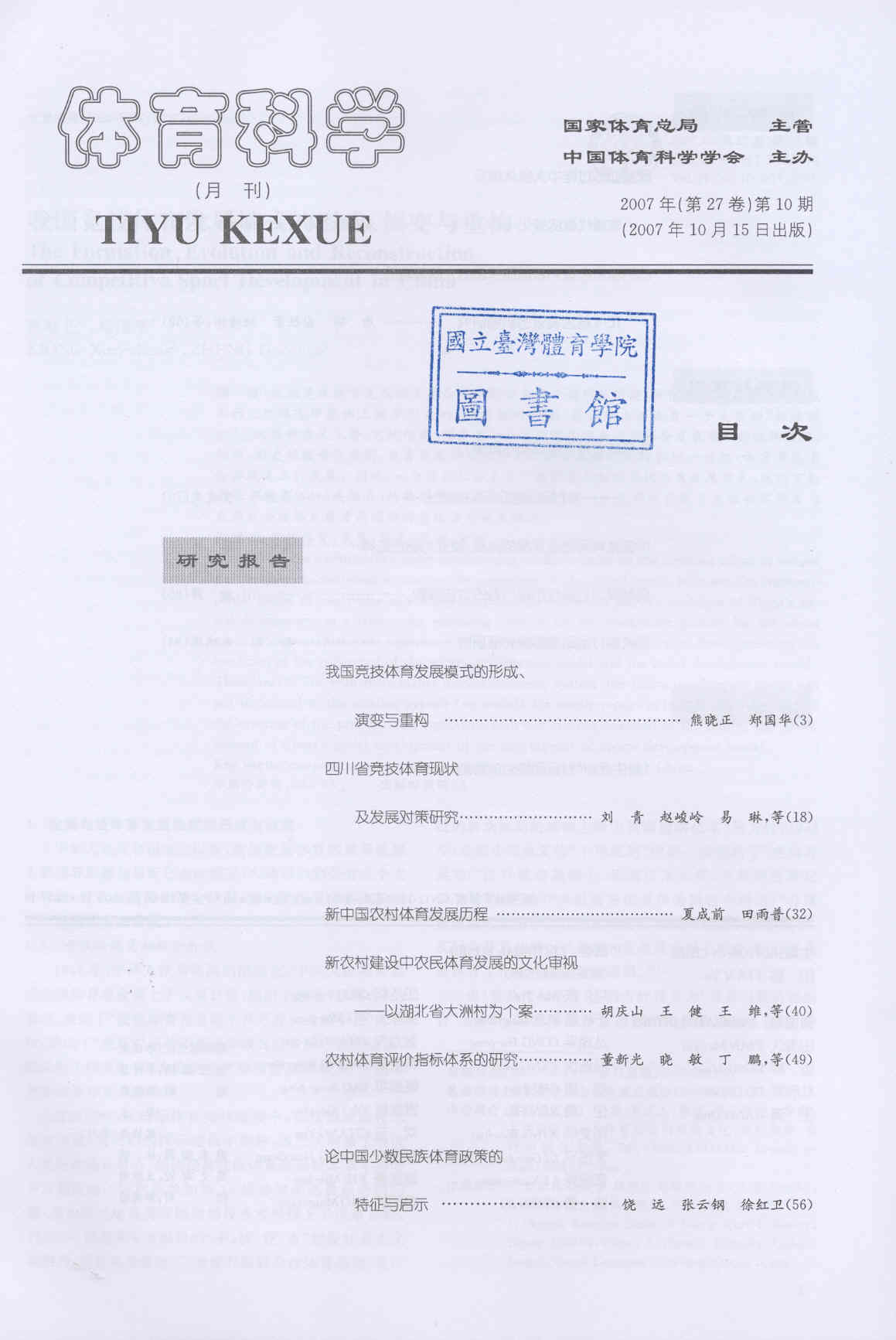 体育科学 2007-10v.27-10(目次服務)