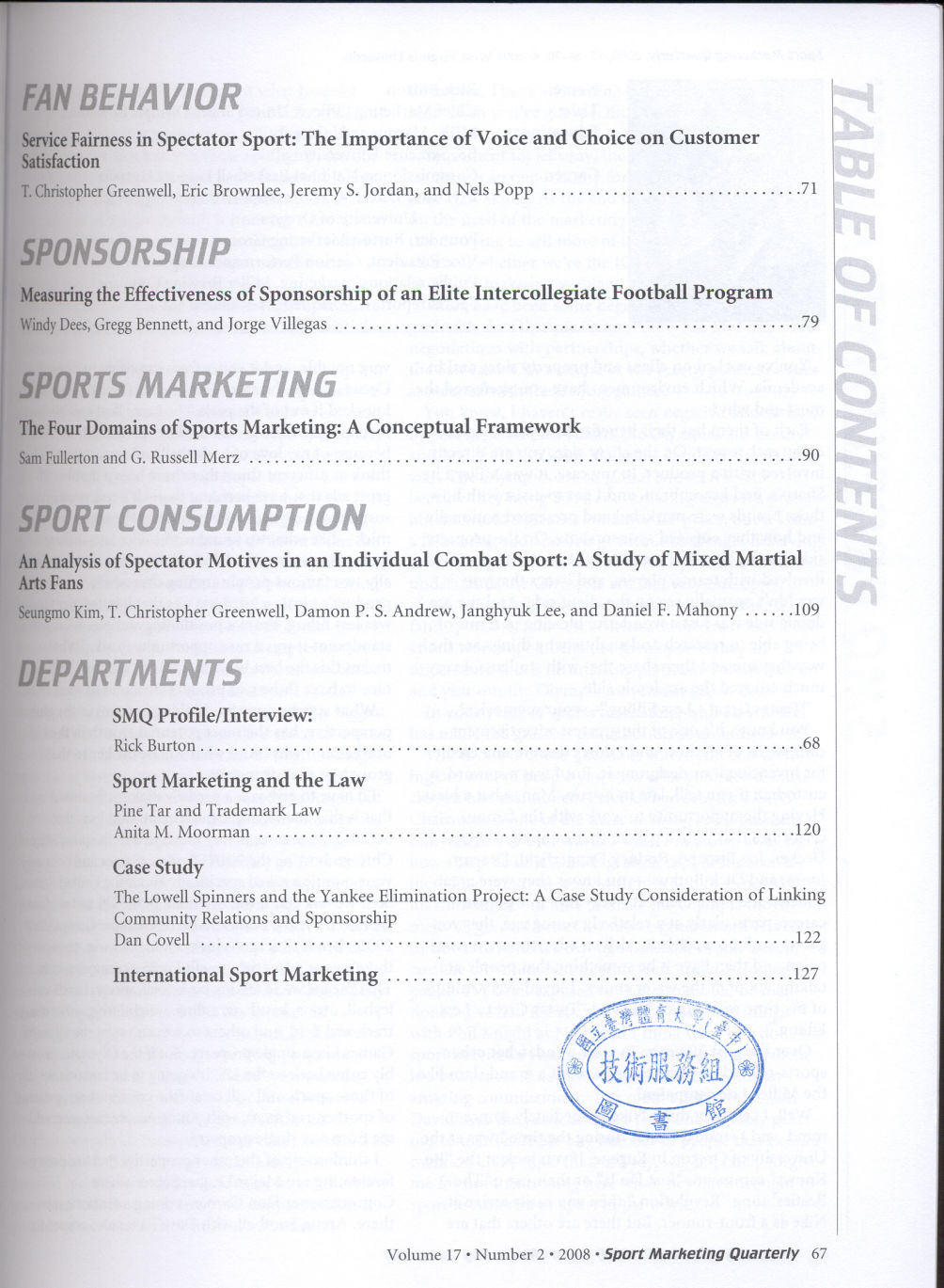 Sport Marketing Quarterly 2008-06v.17-2(目次服務)