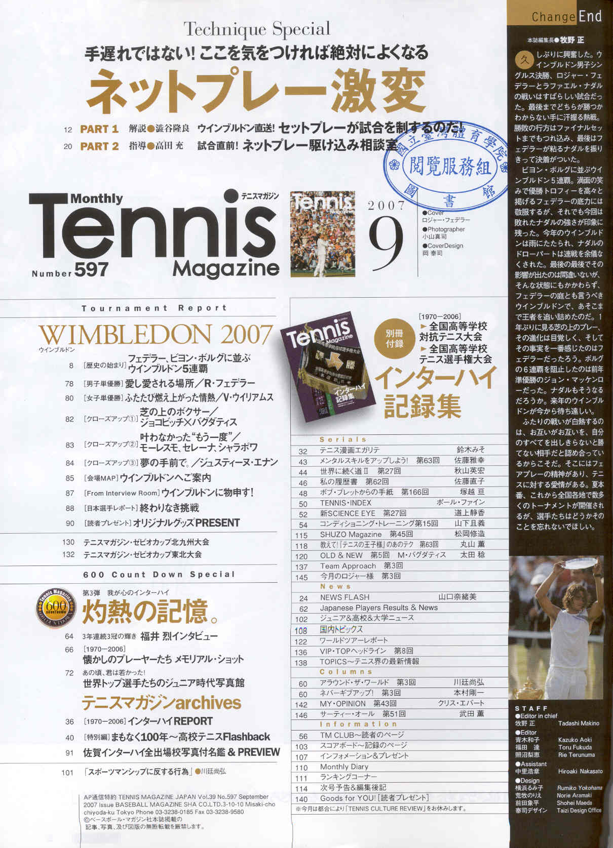 テニスマガジン 2007-09v.38-9(目次服務)