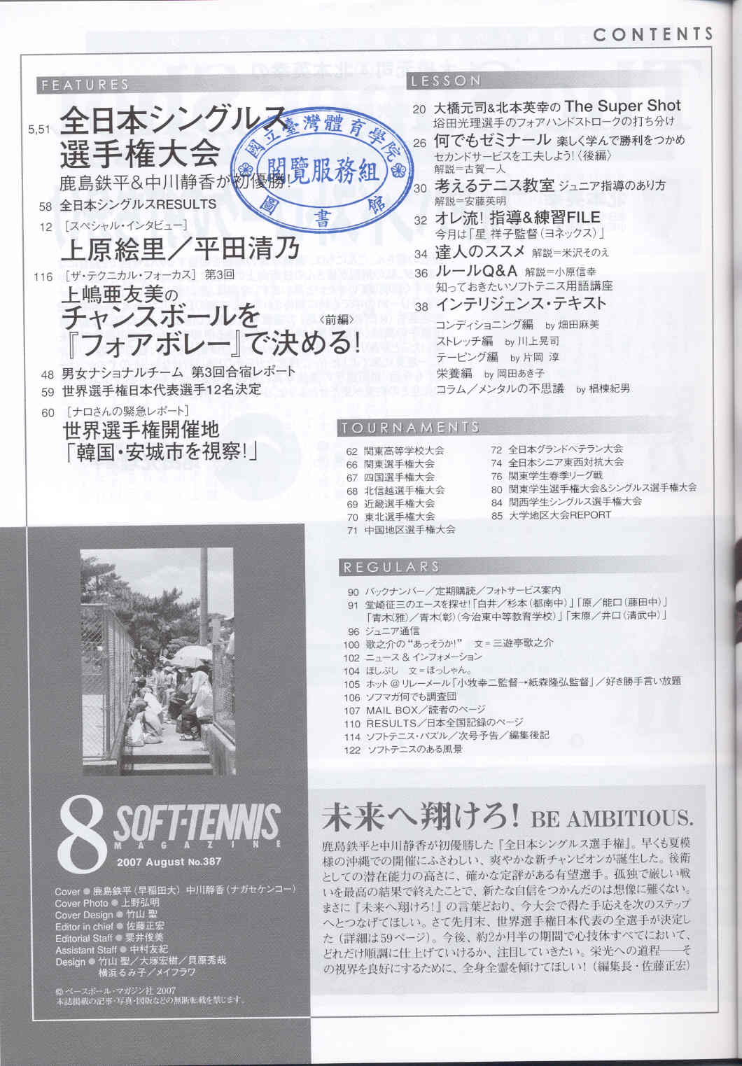 ソフトテニス 2007-08v.33-8(目次服務)