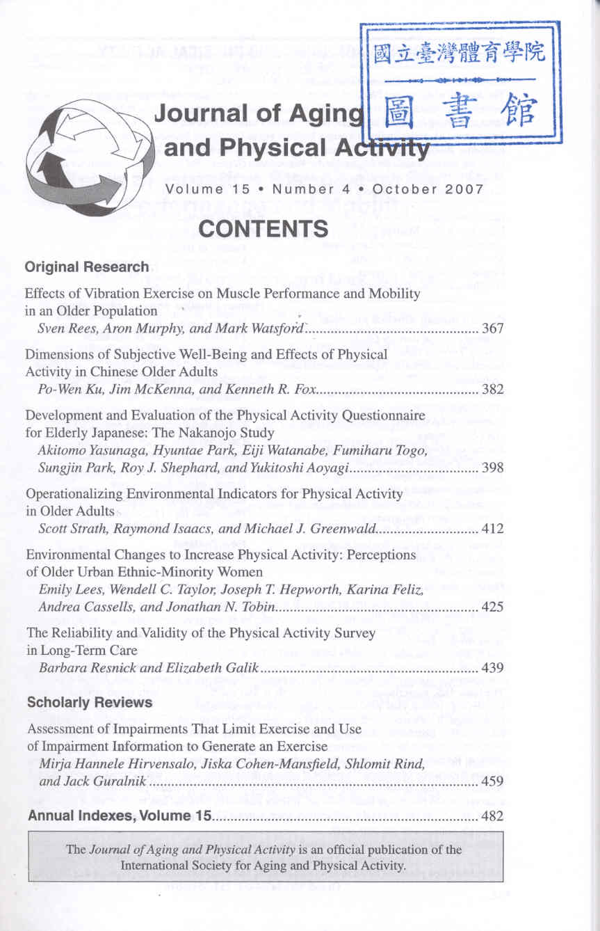 Journal of Aging and Physical Activity 2007-10v.15-4(目次服務)