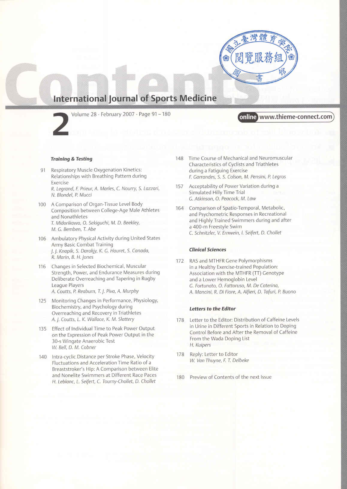 International Journal of Sports Medicine 2007-02v.28-2(目次服務)