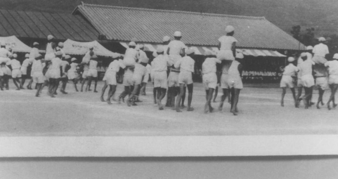 日治時代公學校的運動會,一定有紅白兩組的騎馬打仗,一直延續到光復初期。現在的日本學校,操場是泥沙的材質,騎馬打仗的活動,還存在。(圖文:蔡麗美)