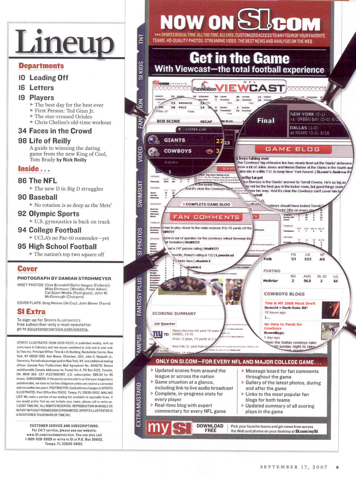 Sports Illustrated 2007-09v.107-11(目次服務)