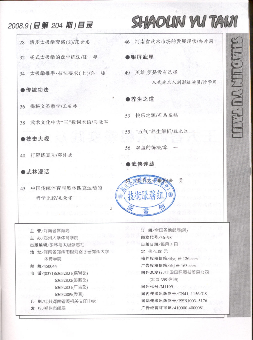少林与太极 2008-09No.204(目次服務)