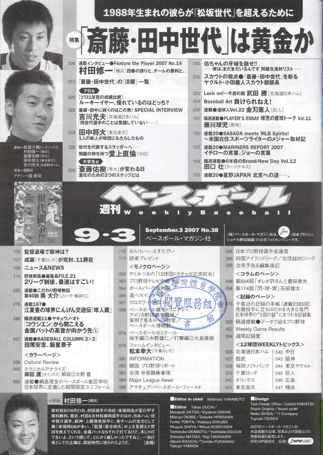 ベ—スボ—ルマガジン 2007-09v.62-38(目次服務)