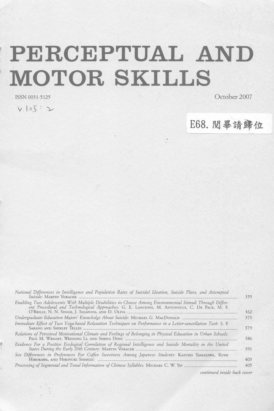 Perceptual and Motor Skills 2007-10v.105-2(目次服務)