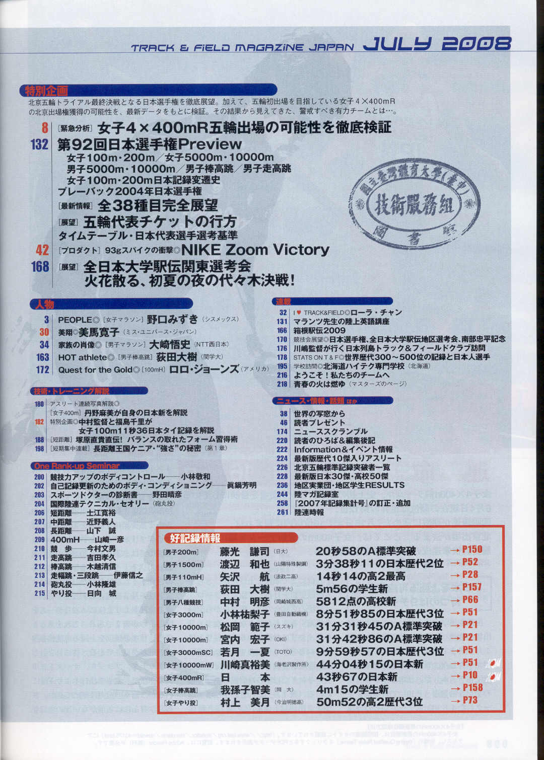 陸上競技 2008-07(目次服務)