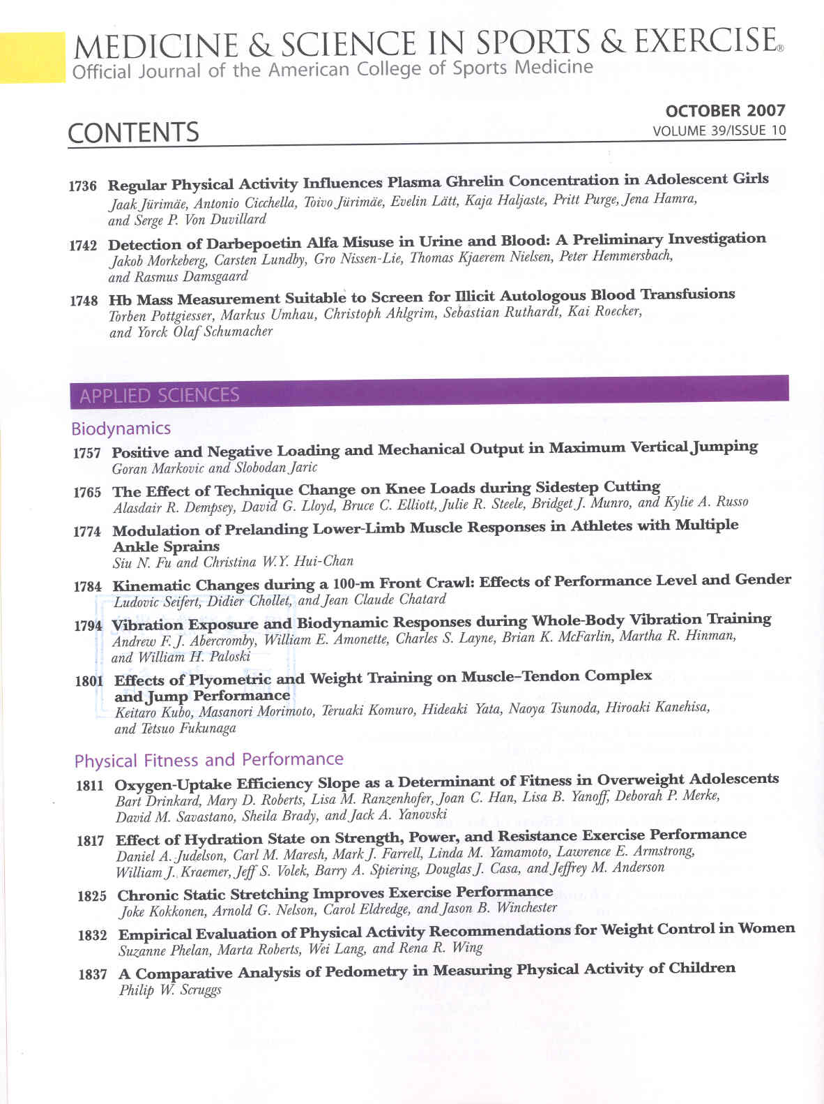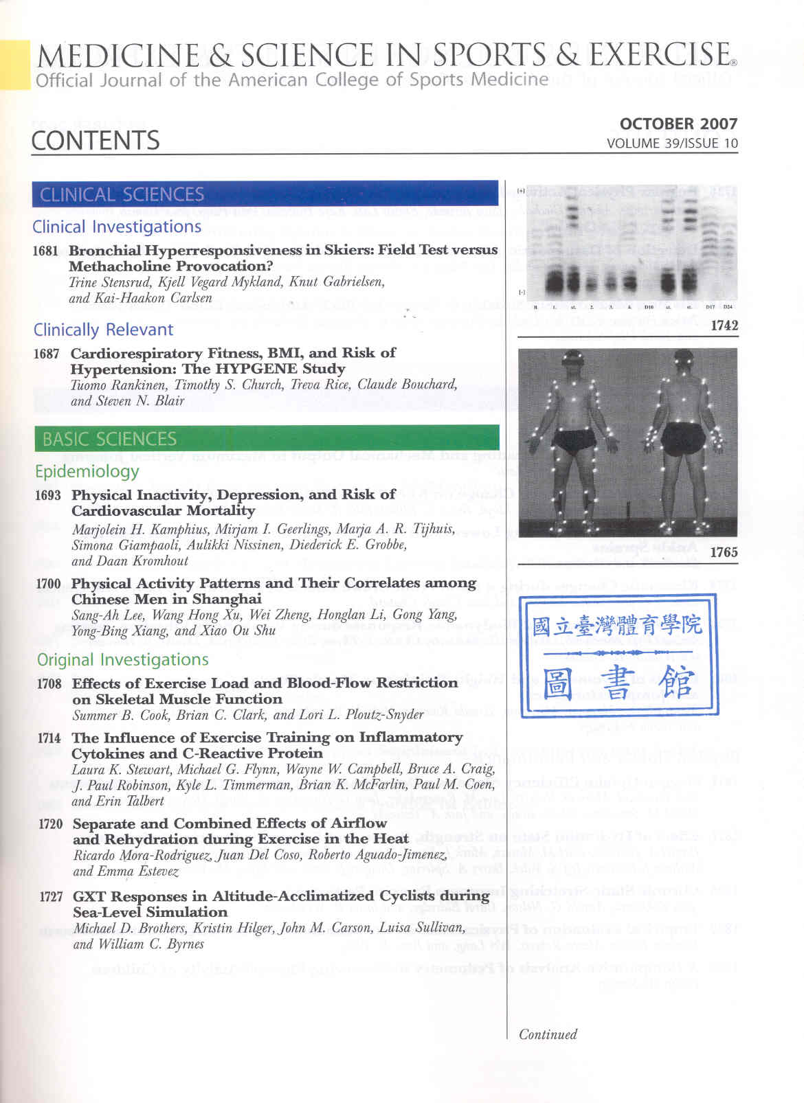 Medicine and Science in Sport and Exercise 2007-10v.39-10(目次服務)