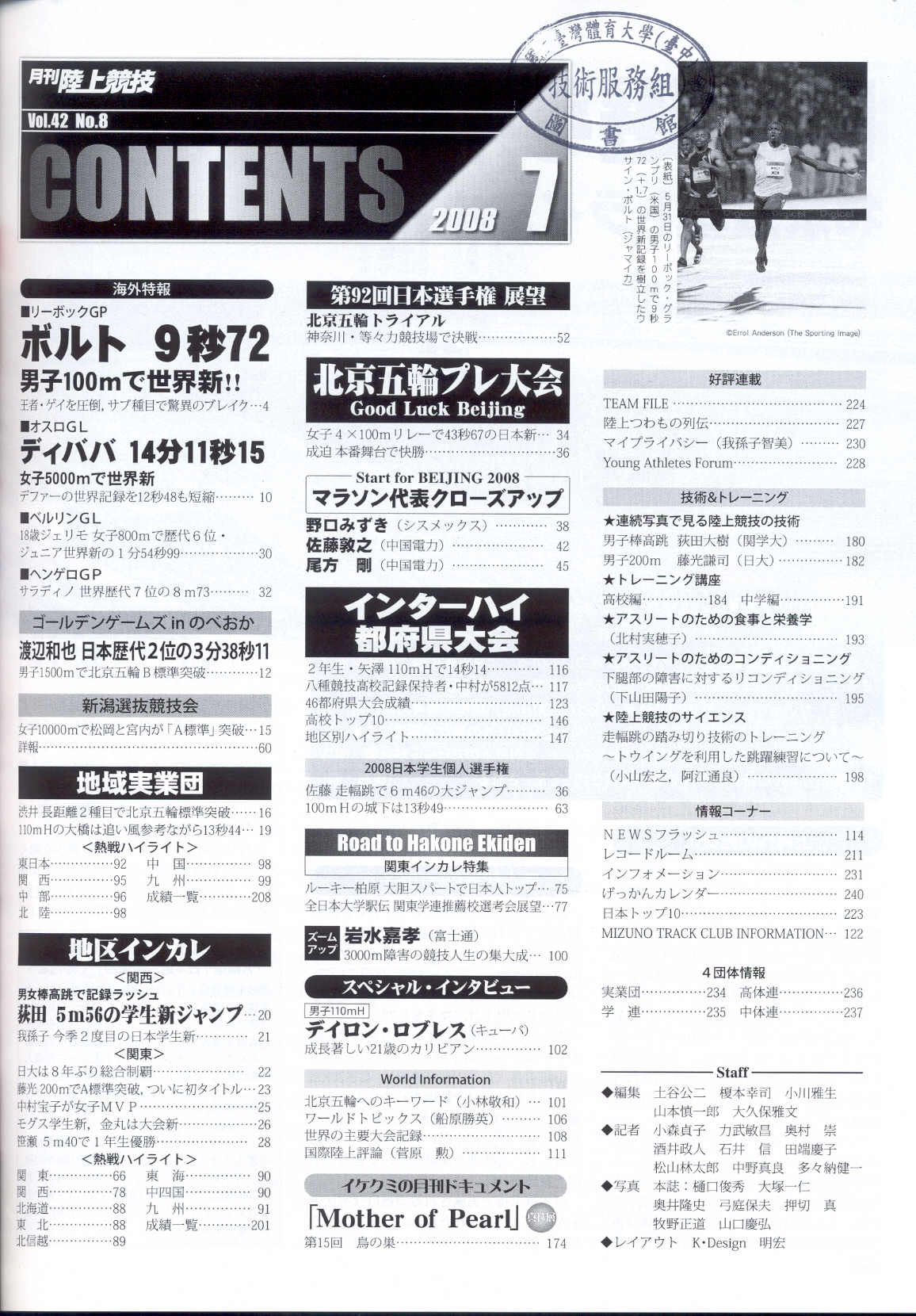 月刊陸上競技 2008-07v.42-8(目次服務)