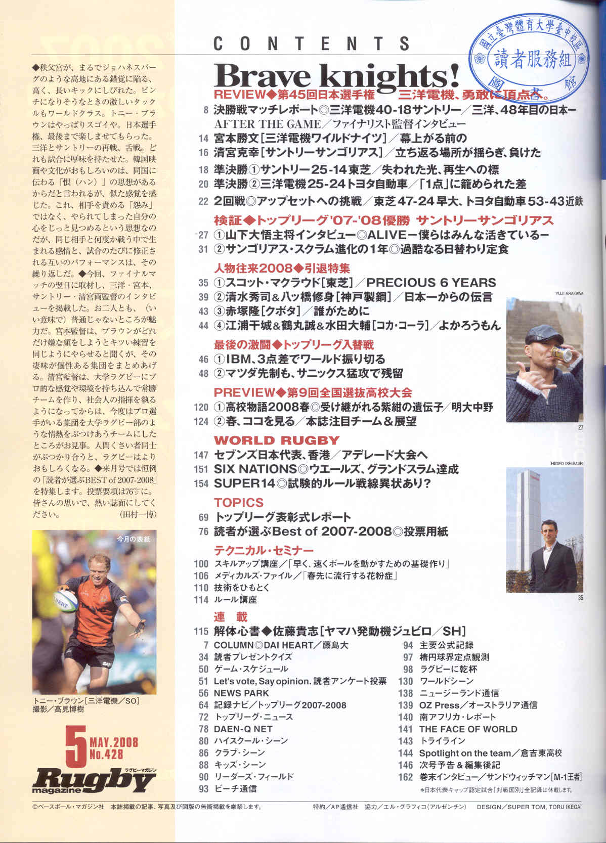 ラクビ—マガジン 2008-05No.428(目次服務)