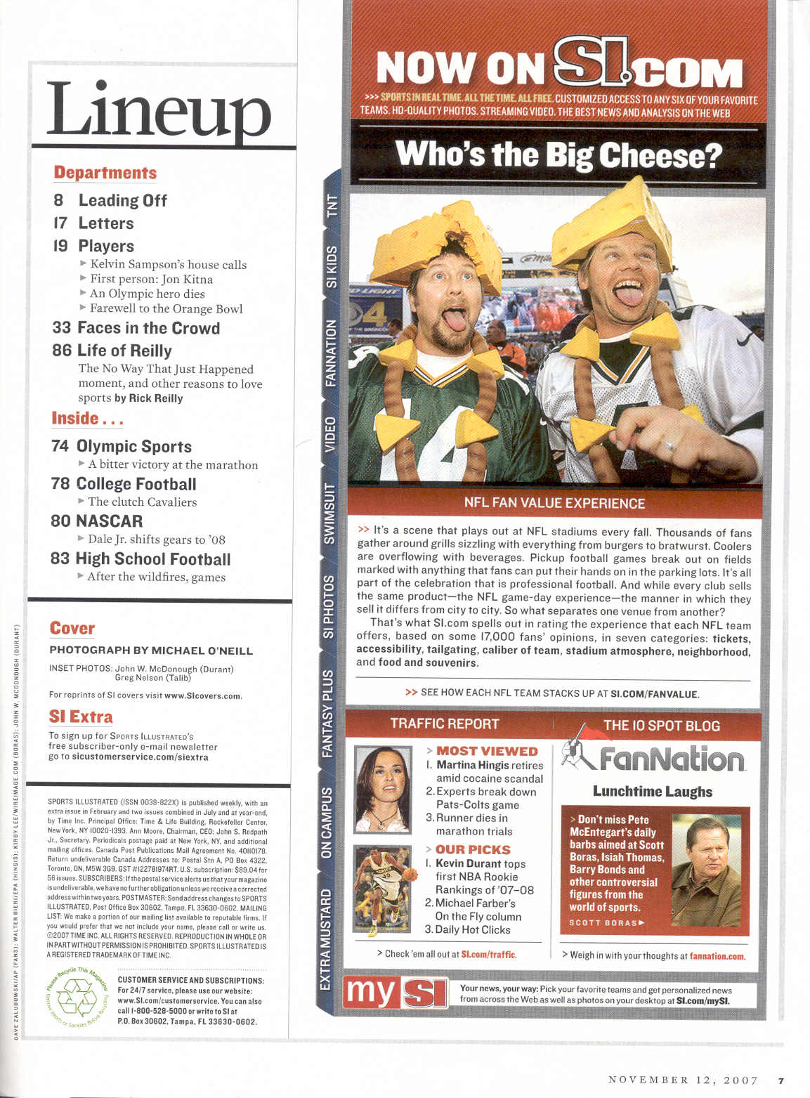 Sports Illustrated 2007-11v.107-19(目次服務)