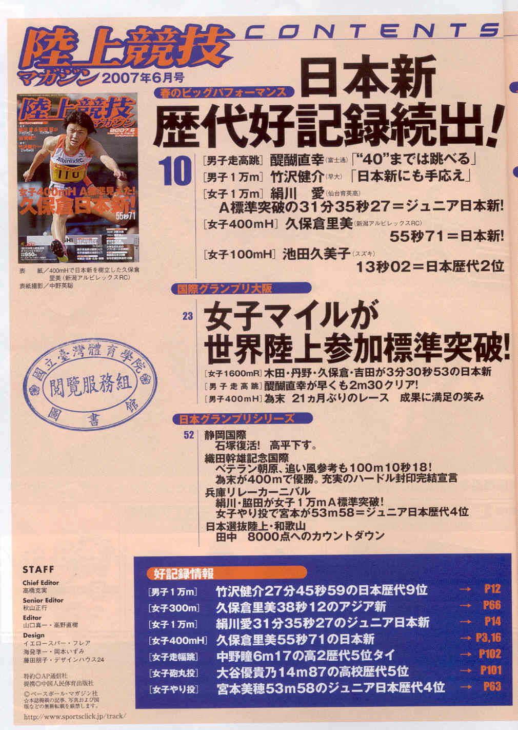陸上競技 2007-06(目次服務)