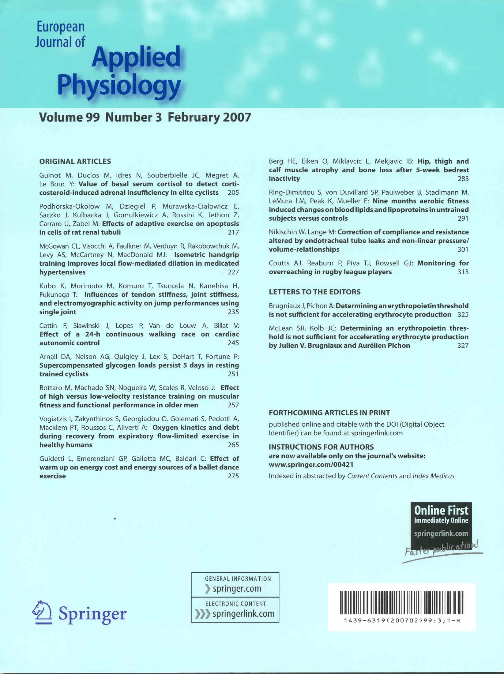 European Journal of Applied Physiology 2007-02v.99-3(目次服務)