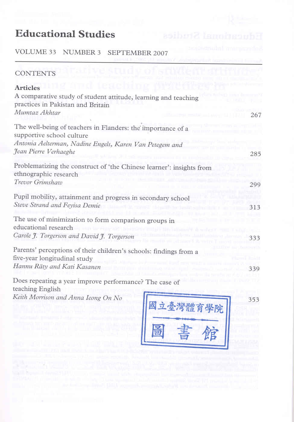 Educational Studies 2007-09v.33-3(目次服務)