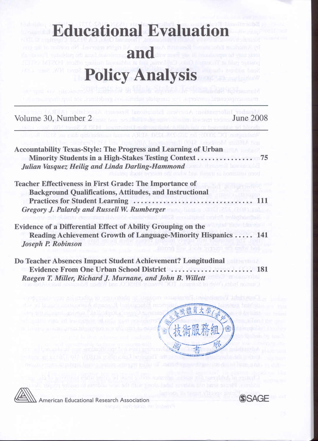 Educational Evaluation and Policy Analysis 2008-06v.30-2(目次服務)