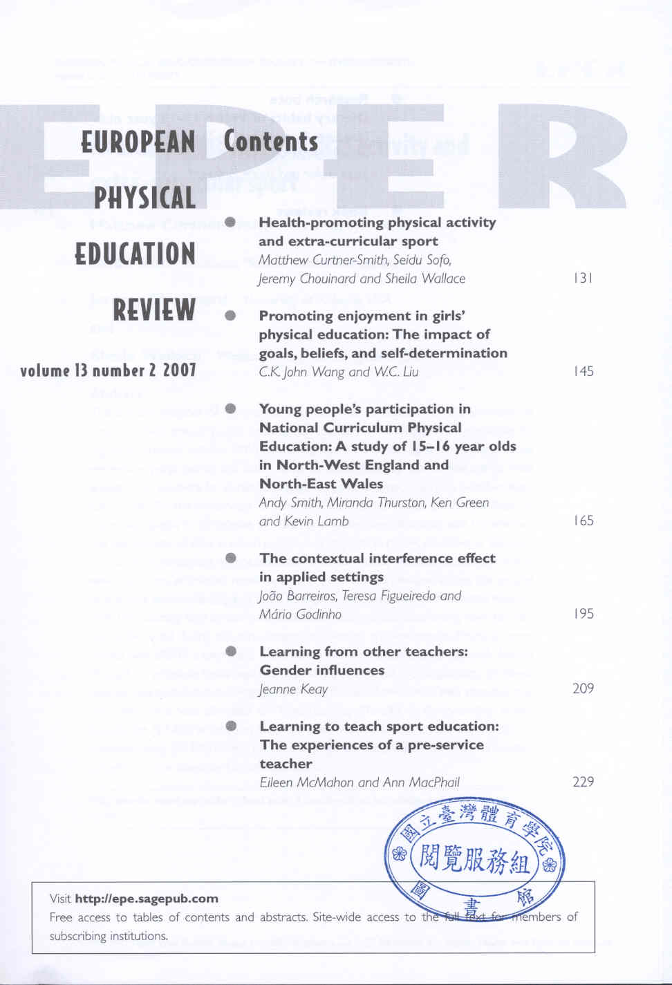 European Physical Education Review 2007-06v.13-2(目次服務)