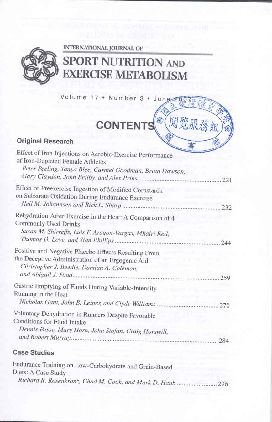 International Journal of Sport Nutrition and Exercise Metabolism 2007-06v.17-3(目次服務)