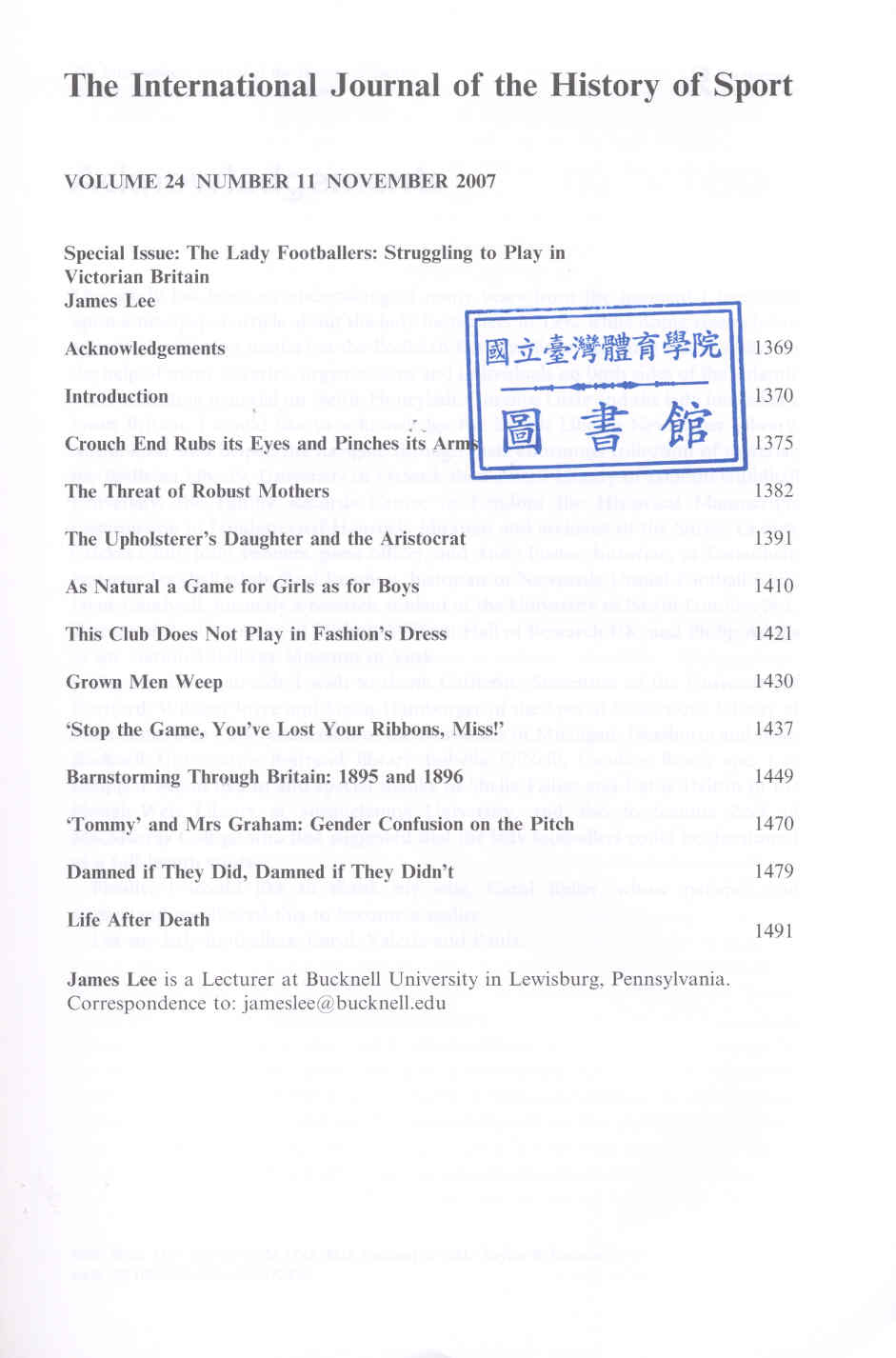 International Journal of the History of Sport 2007-11v.24-11(目次服務)