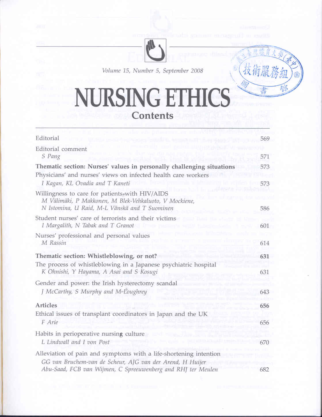Nursing Ethics 2008-09v.15-5(目次服務)
