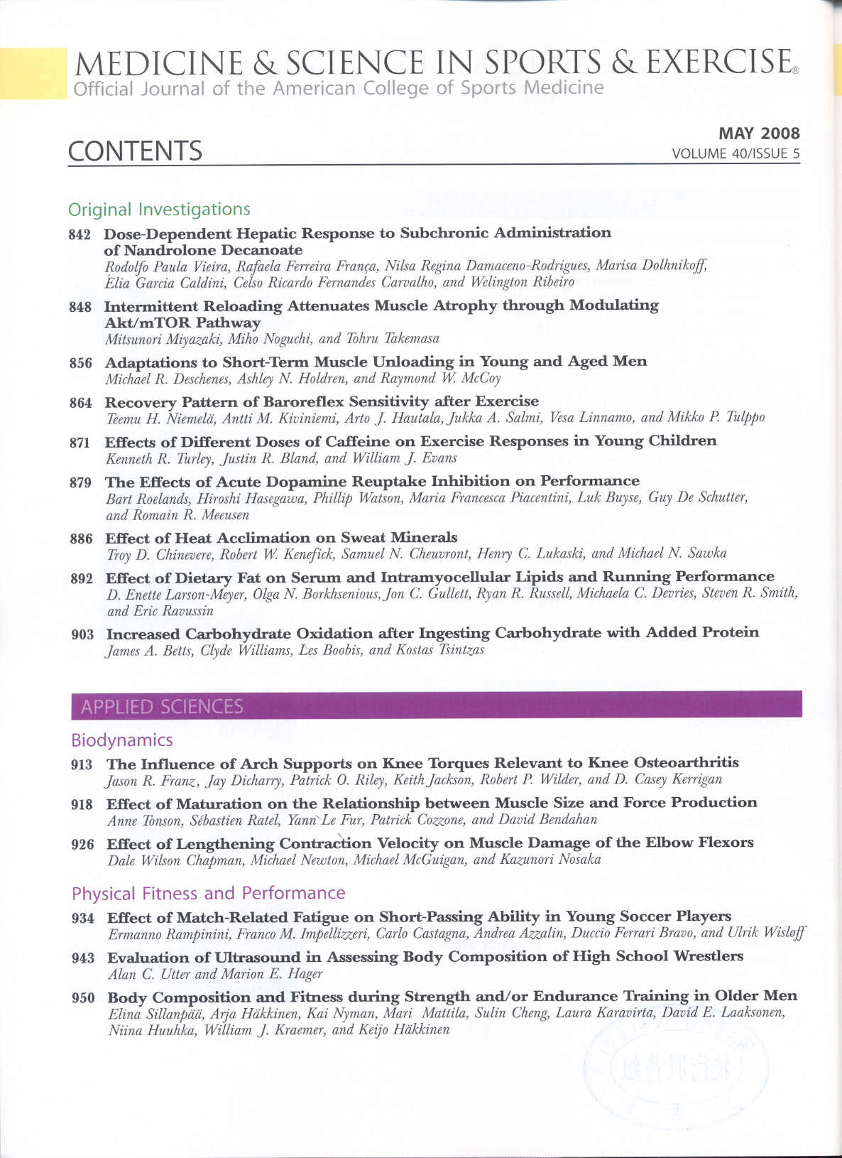 Medicine and Science in Sport and Exercise 2008-05v.40-5(目次服務)
