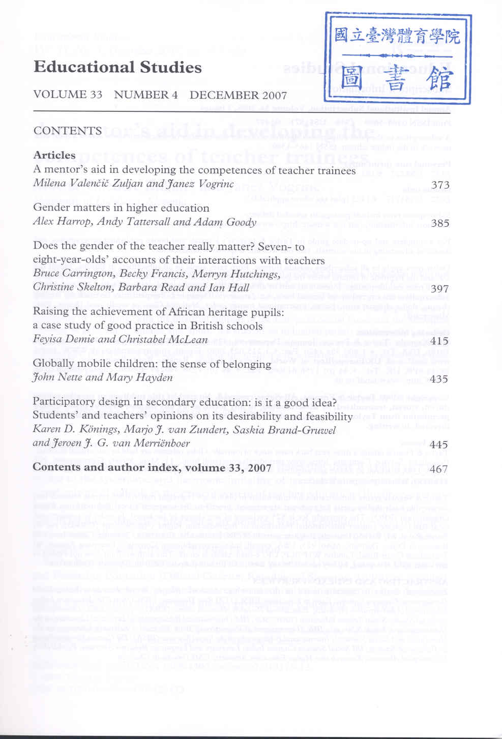 Educational Studies 2007-12v.33-4(目次服務)