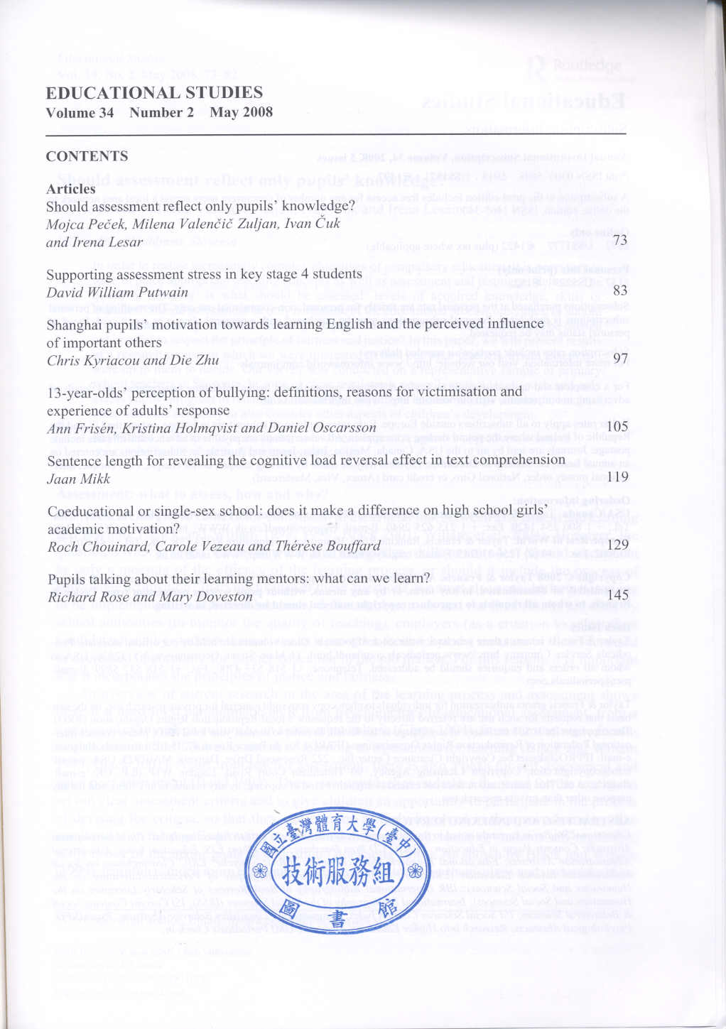 Educational Studies 2008-05v.34-2(目次服務)