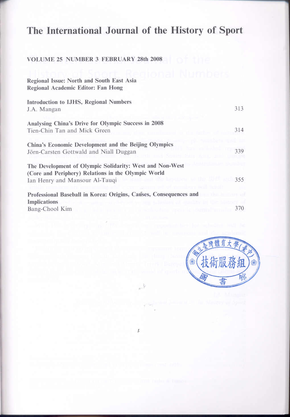 International Journal of the History of Sport 2008-02v.25-3(目次服務)
