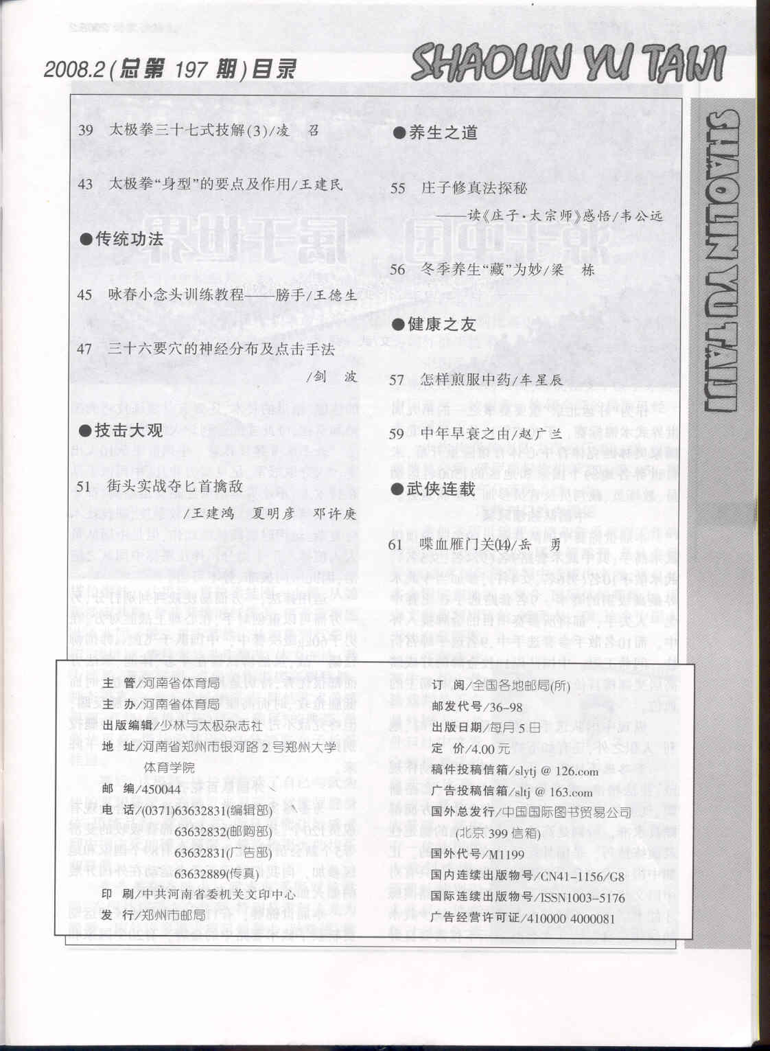 少林与太极 2008-02No.197(目次服務)